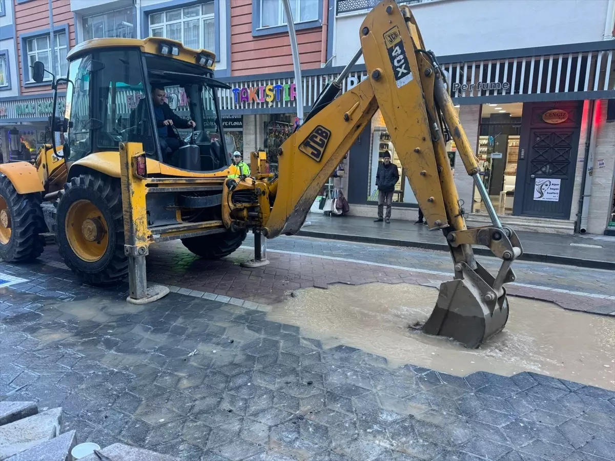 Cumhuriyet Caddesi’nden geçen borunun patlaması sonucu tazyikli su caddede birikti, araç trafiğinde aksama yaşandı.